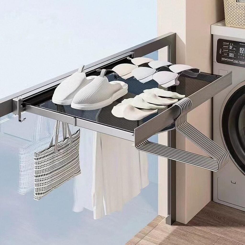 Balcony Retractable Tiled Net Clothes Drying Rack,Wall-Mounted Mesh Sweater Drying Rack,Folding Clothes Basket Clothes Drying Net,Black,60cm