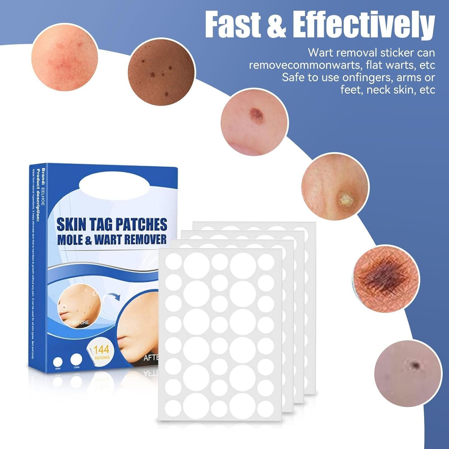 - ??Significant Effect?— The black mole removal patch is absorbed by the skin immediately after application, does not leaks, and removes warts without other special tools or complicated instructions. Mole Remover Can be used with confidence without any harm to the skin.