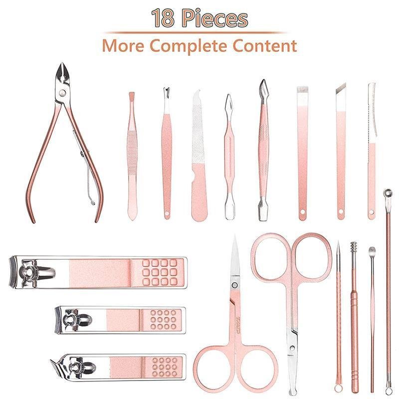 The 18PCS manicure pedicure grooming kit has all the tools you need to perform professional manicures, pedicures, facial treatments, blackhead removal, anti-acne etc.