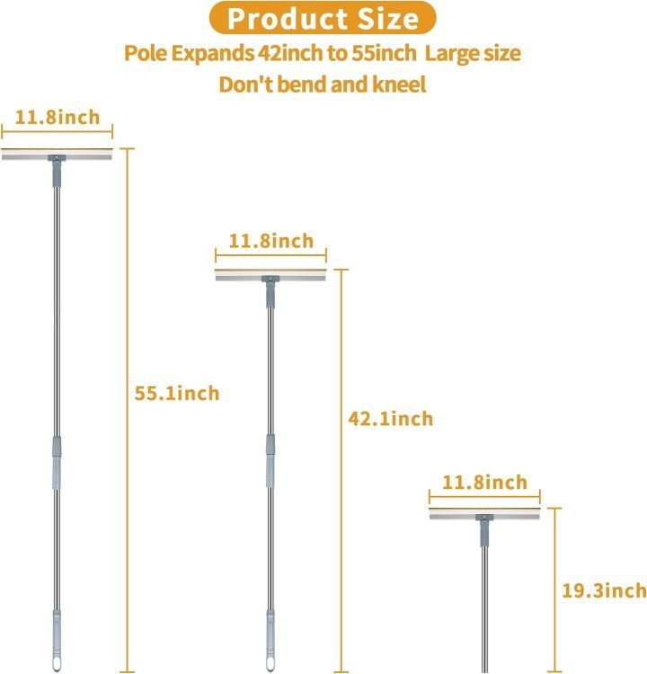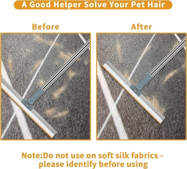 - ?Telescopic Handle?: Pet Hair Removal Broom has adjustable and ergonomic design. Stainless steel rods can contract to 42.1 inches or extend to 55.1 inches, meeting your cleaning needs without requiring you to bend over or crawl.It protects your knees and eliminates back pain, making cleaning pet hair a breeze and enjoyable experience.