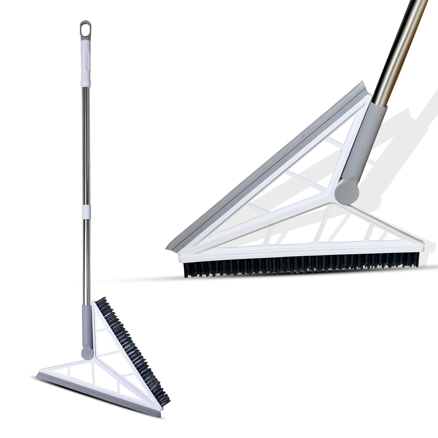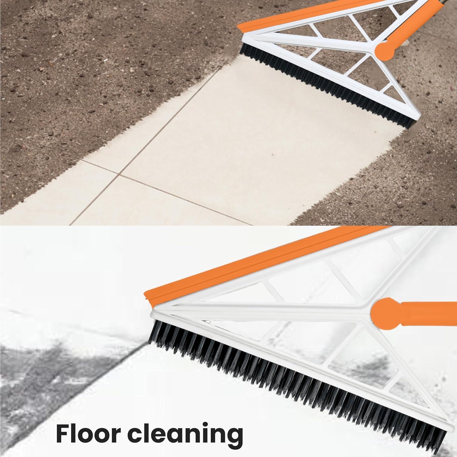 - Bathroom cleaning brush comes in 2 in 1 function that is floor scrub brush and rubber scrape. Bathroom brush ‘s stiff bristles is used for scrubbing the floor, after brushing the floor, you can easily scrape off the sewage with the rubber squeegee.