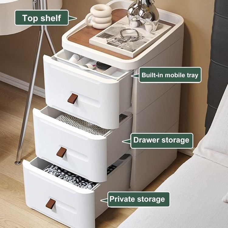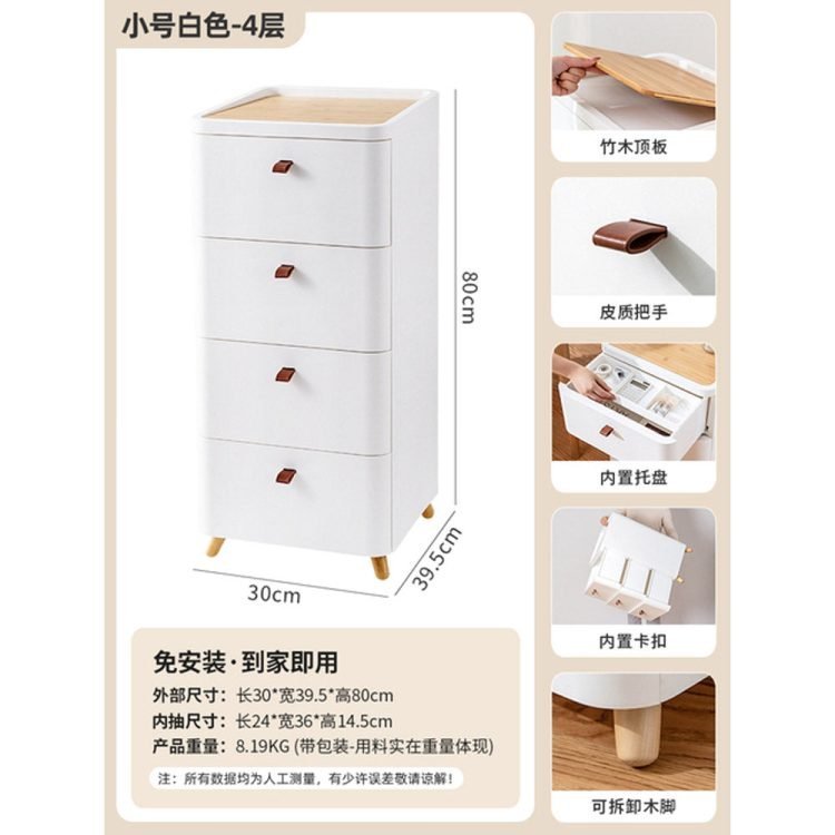 4 Drawer Storage Cabinets Japanese Style Bedside Table Plastic Simple Multifunctional Storage Cabinets