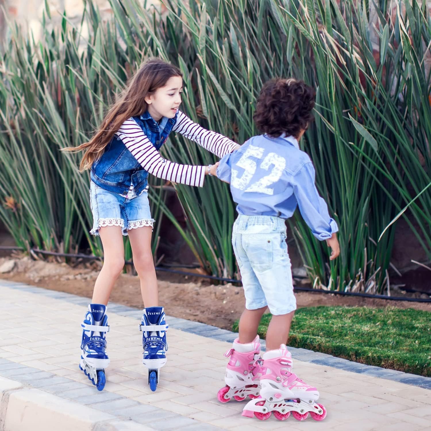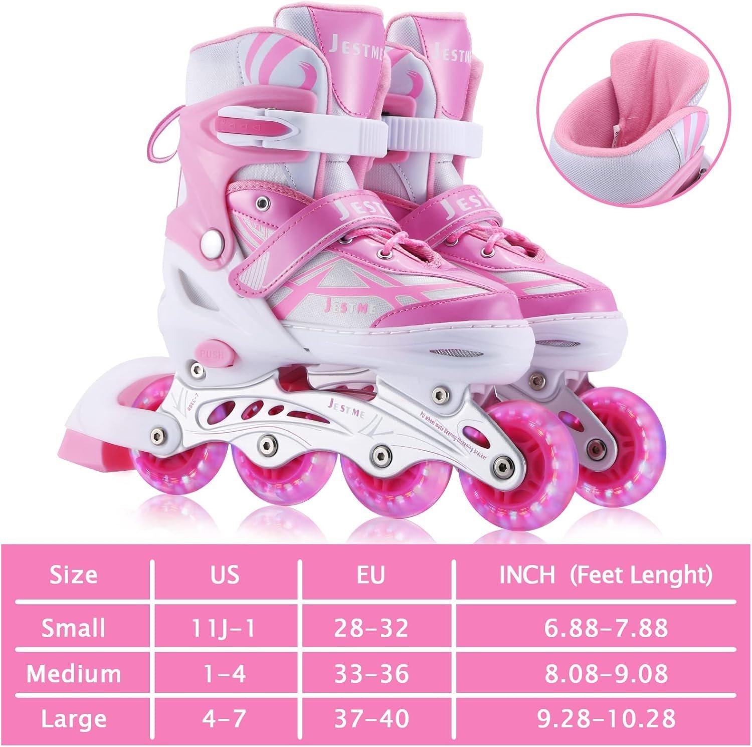 - Adjustable Inline Skates: Children Inline Skates with two Size: Small-Little Kids(11J-1US) and Medium-Big Kids(1-4 US). Each Size is Adjustable.