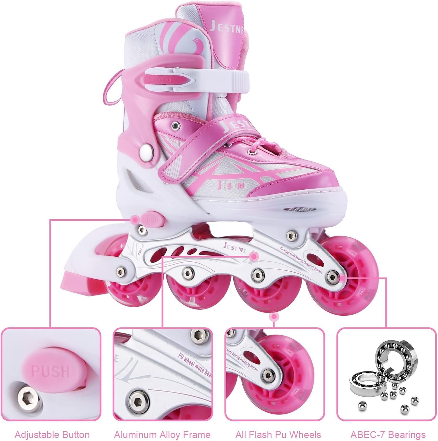 - Durable And Smooth: The Frame of This Inline Skate is made from Reinforced aluminium alloy, High-Speed Mute ABEC-7 Bearings which Is Made from Premium quality Carbon Steel. Enjoying Smooth, Quiet And Confident Riding by Your Kids.