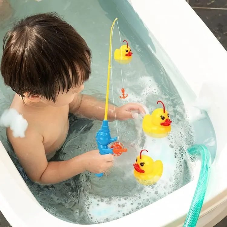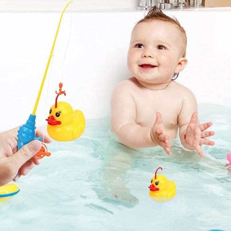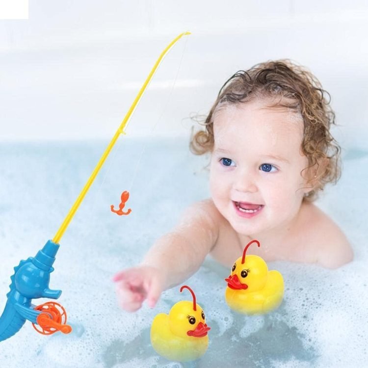 • Bath fish toys – kids try to catch duck, duck 1 duck, then 2 duck and 3 duck. This strengthens children’s confidence and patience. It can also help toddlers identify the blue, green and orange duck and catch them when asked. You can also use fishing nets to catch ducks.
