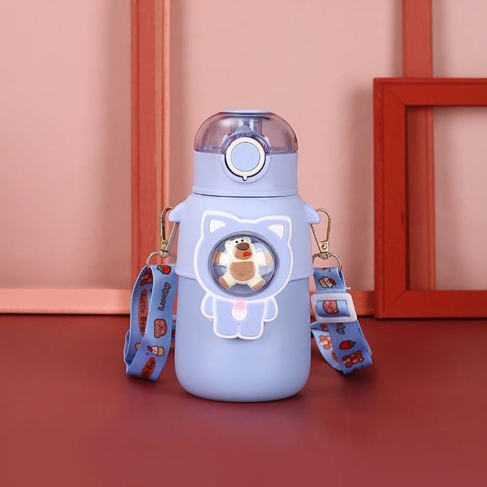 - Cute water bottle with silicone straw, perfect for kids; adjustable shoulder strap for easy portability; built-in silicone seal in the lid to prevent water leakage