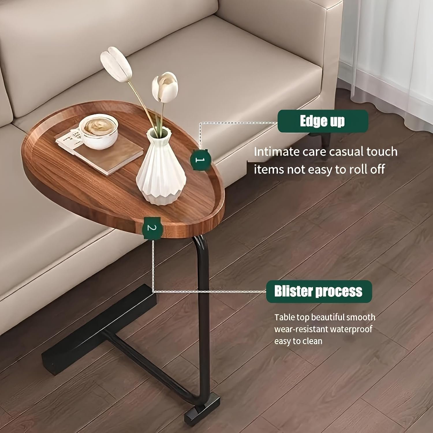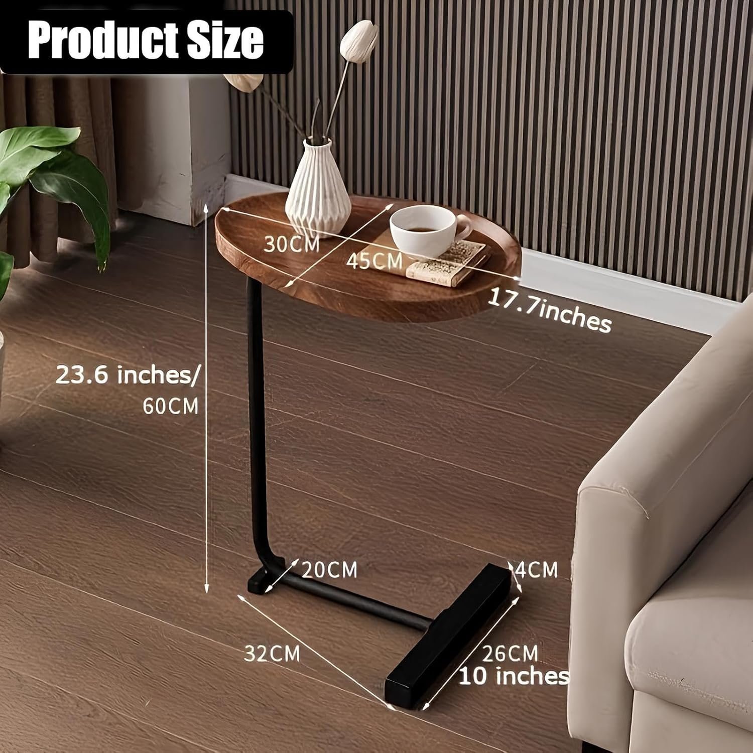- [C Shaped Side Table] Due to the C-shaped design, this end table can easily push into the side of your sofa or chair. Slip into the base under your sofa, couch or bed to make your snacks, coffee, remotes, phones, books easier to reach.