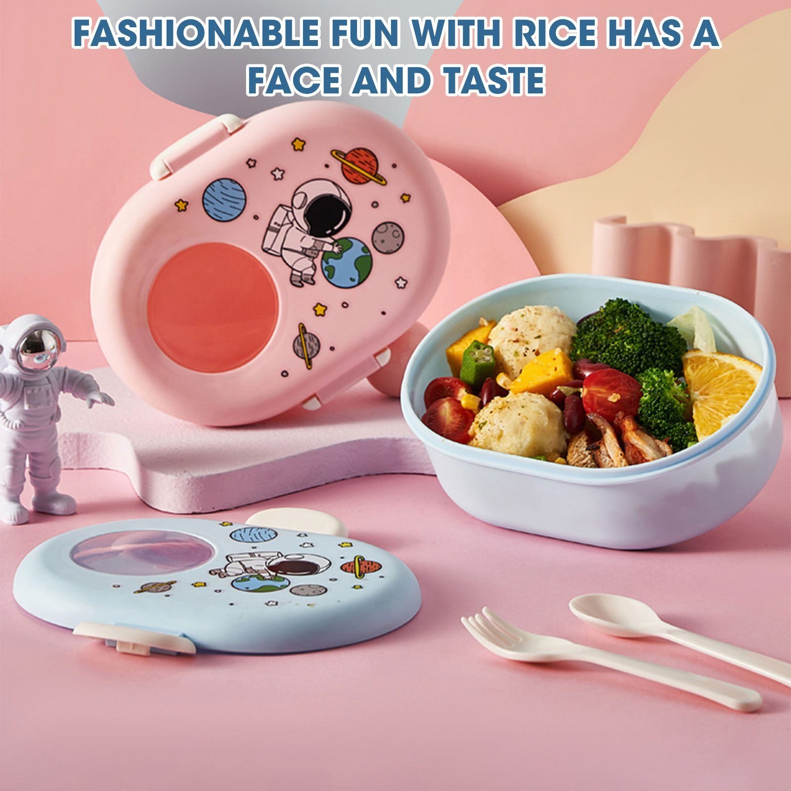 Product details of Cartoon Astronaut Lunch Box for Kids Leakproof Food Grade Microwave Safe Students Bento Food Container
