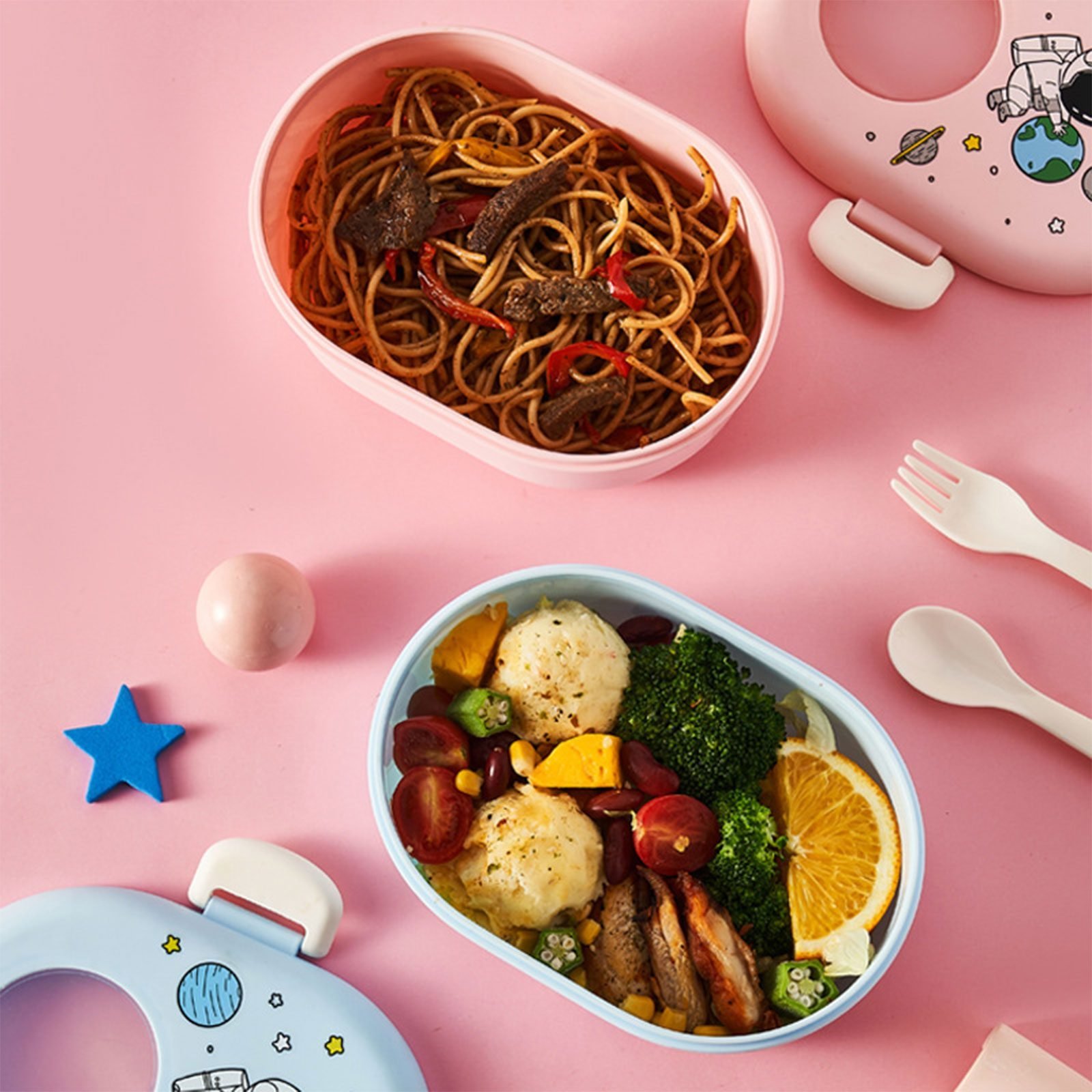 Cartoon Astronaut Lunch Box for Kids Leakproof Food Grade Microwave Safe Students Bento Food Container