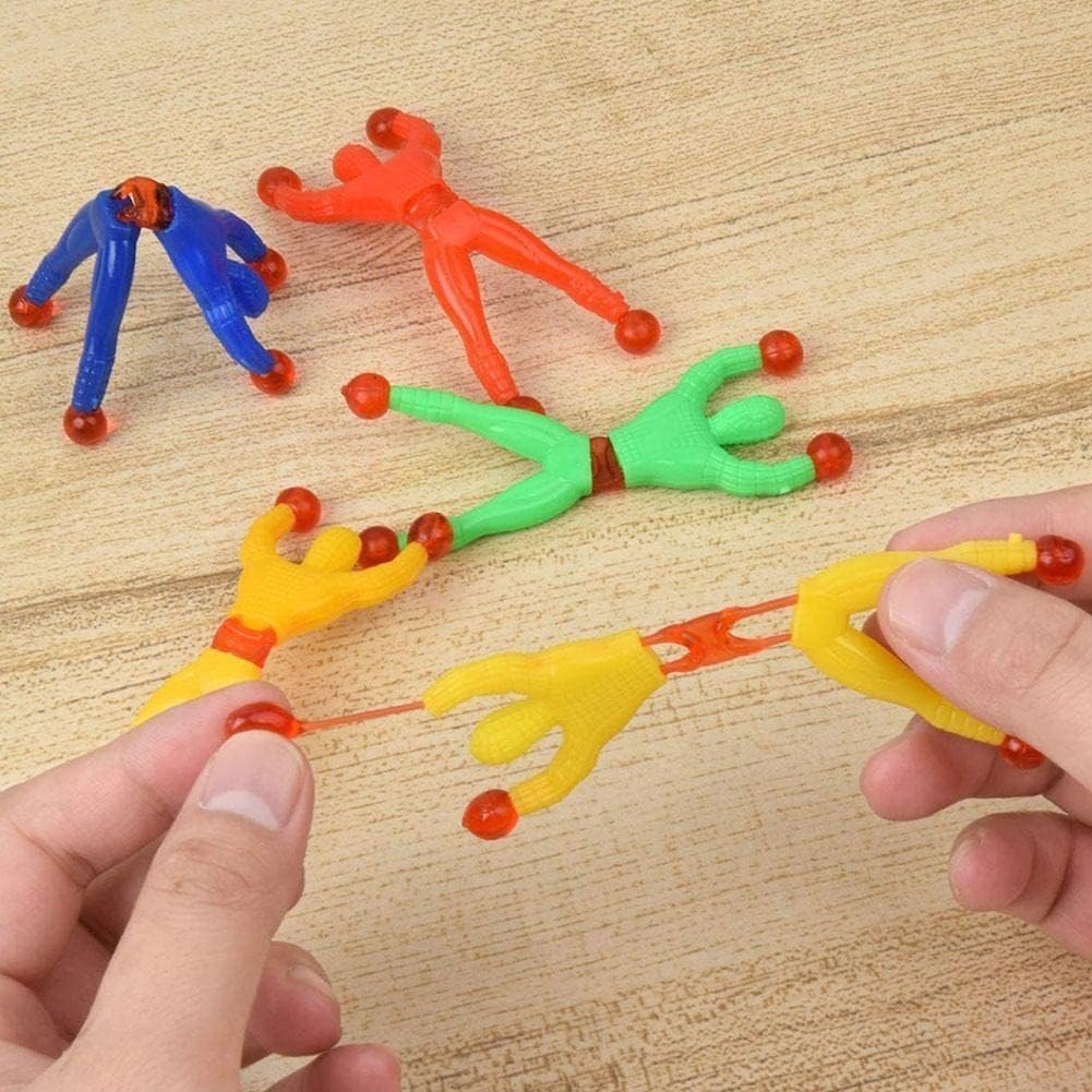 - 🎁 DIMENSIONS – Each wall climber measures 3.5 x 1 inch. Super light, easy to throw / toss, and comes in assorted fun colors. Hands and feet have small glue balls. Glue balls have good resilience and can extended flexible.