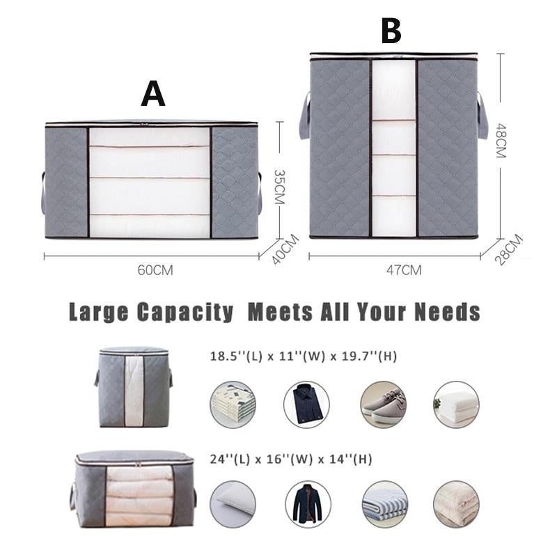 Space Saving- Multifunctional bedding storage bag, you can easily put every seasonal clothing, quilt or blanket, A size is suitable for storing 10-11 pounds of items, B size is suitable for storing 7-8 pounds of items.