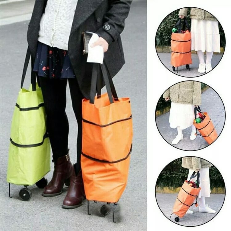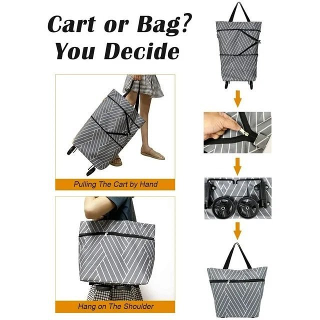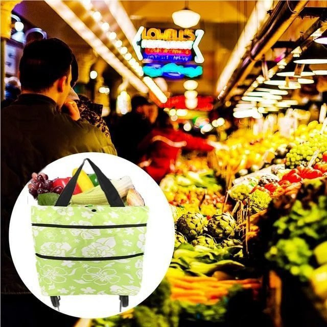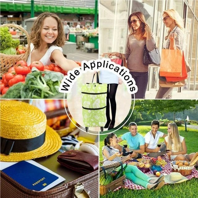 Collapsible Shopping Bag with Wheels, Folding Shopping Cart Reusable Bags, Grocery Bags, Trolley Bags for Women