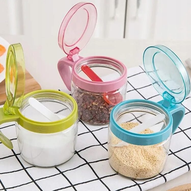 • ??Transparent visible?The surface of Plastic Spice Jars is designed with high transparency, which makes it easy to distinguish seasonings. This Seasoning Box is designed with an electroplated handle, which is bright in color and comfortable to hold.