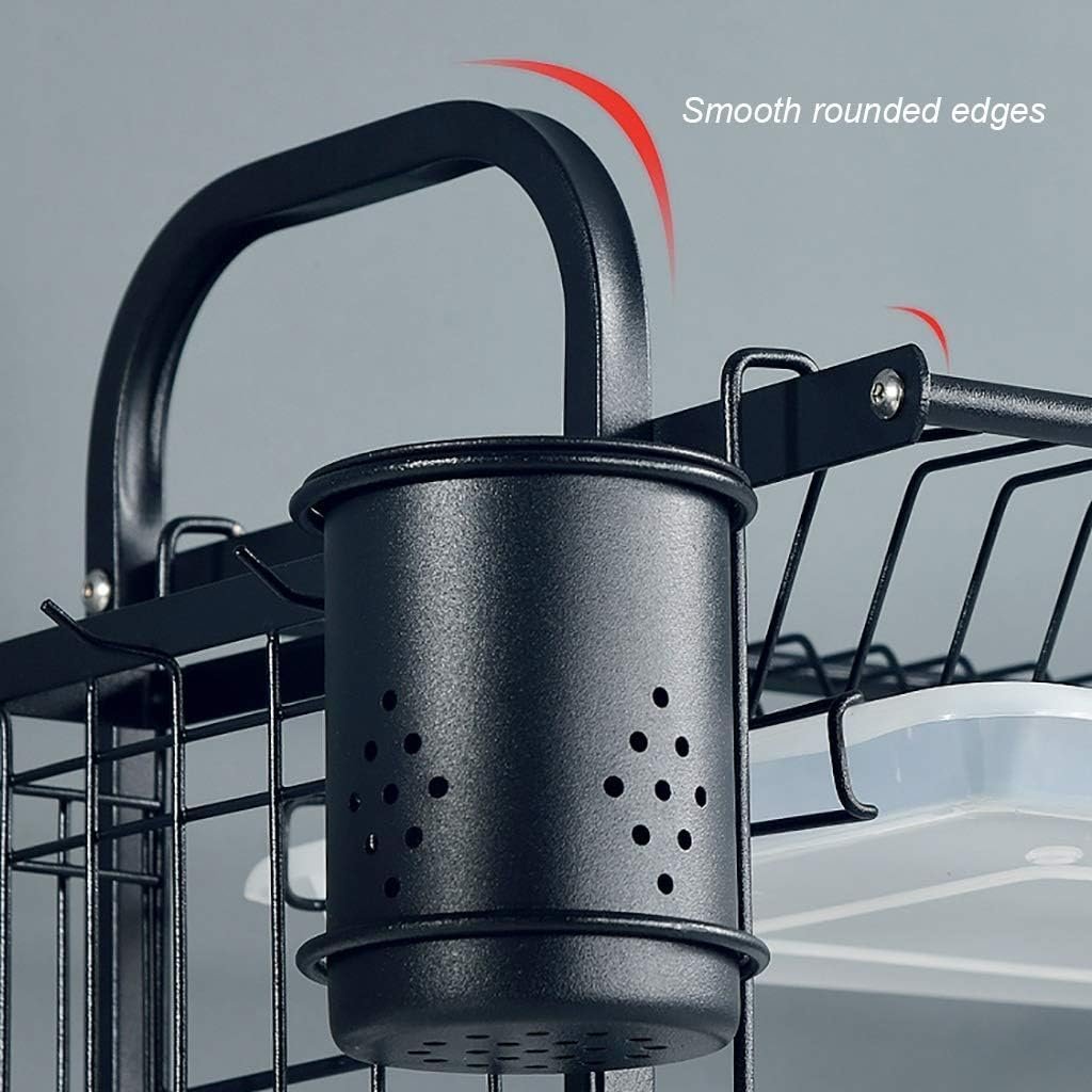 Dish Drying Rack 2 Tier Dish Drying Rack, 304 Stainless Steel Kitchen Organizer with Drainboard/Cutlery Holders, Black