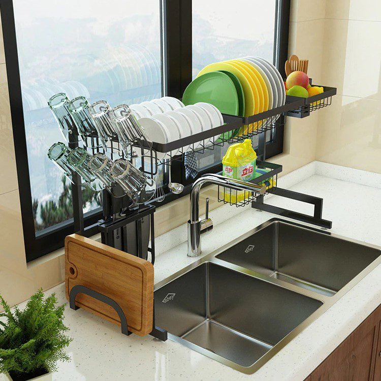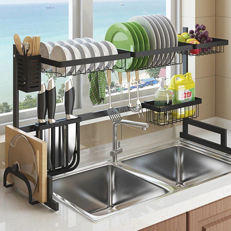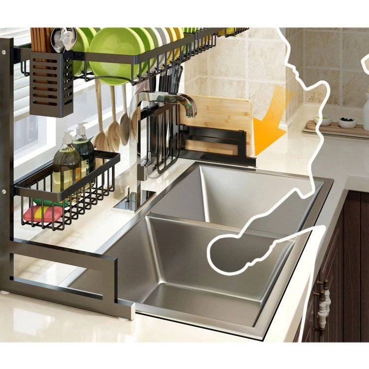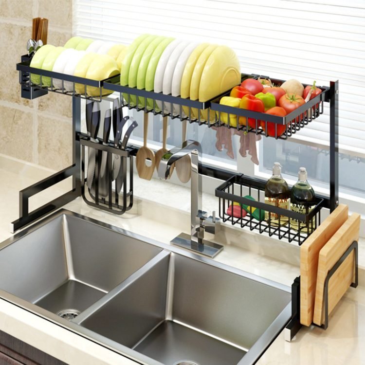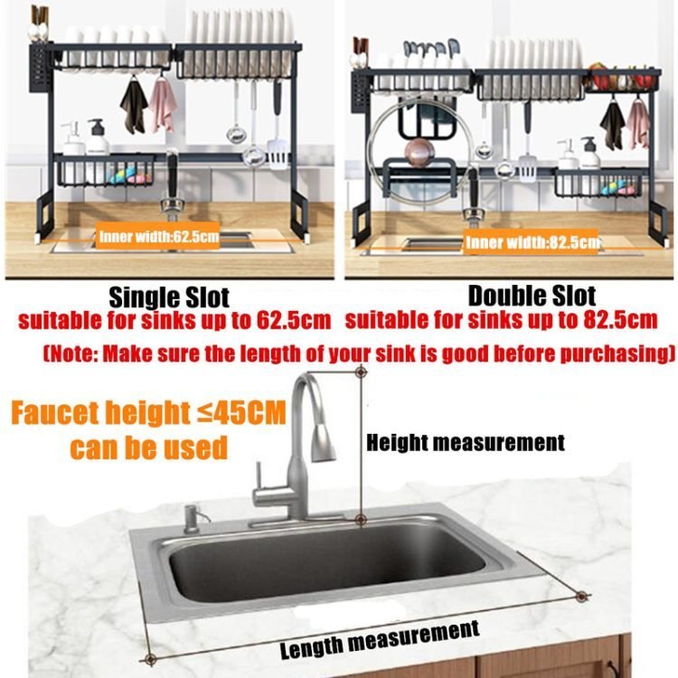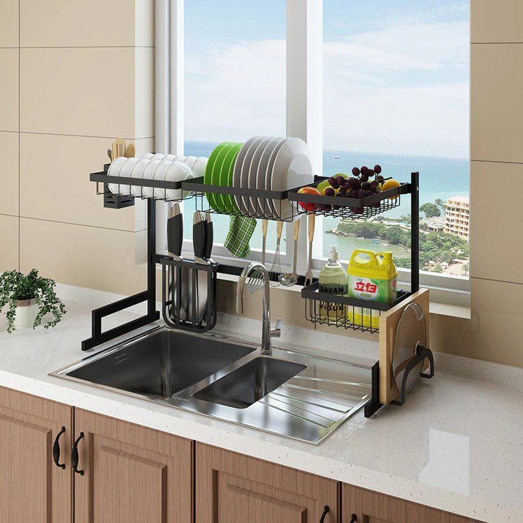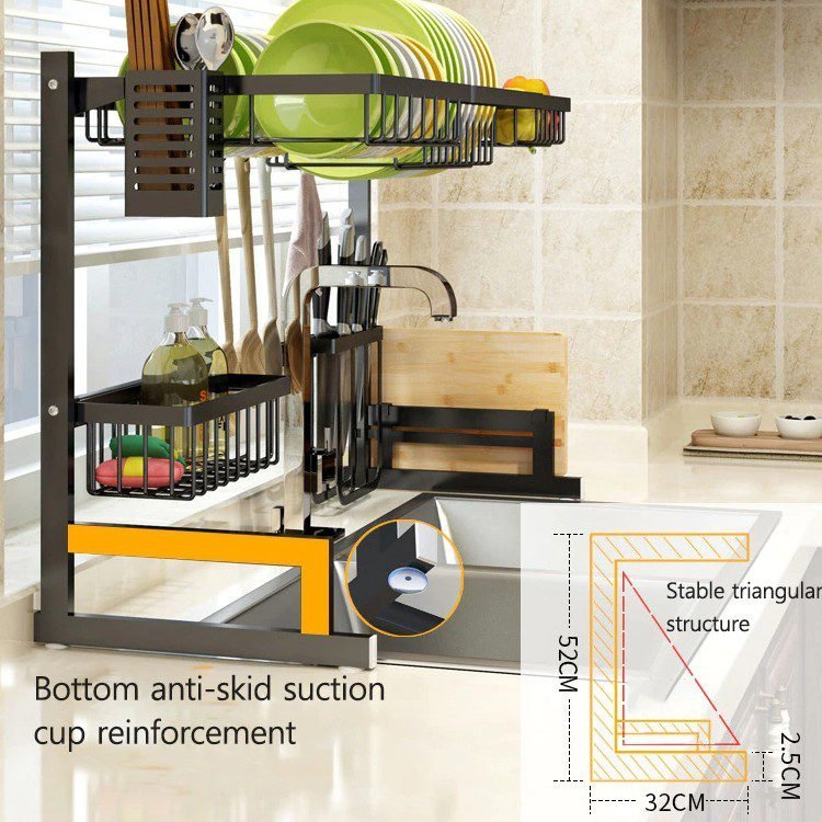 Dish Rack Stainless Steel Kitchen Rack Sink Storage Utensils Black Storage Supplies Multi-Function Storage Shelf 65cm