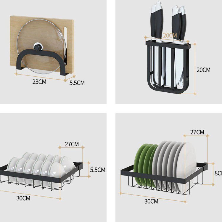 65cm Shelf+Chopsticks Cage+Dish Rack+Bowl Rack+Knife Holder+Chopping Board Rack+Square Basket+5 Hooks