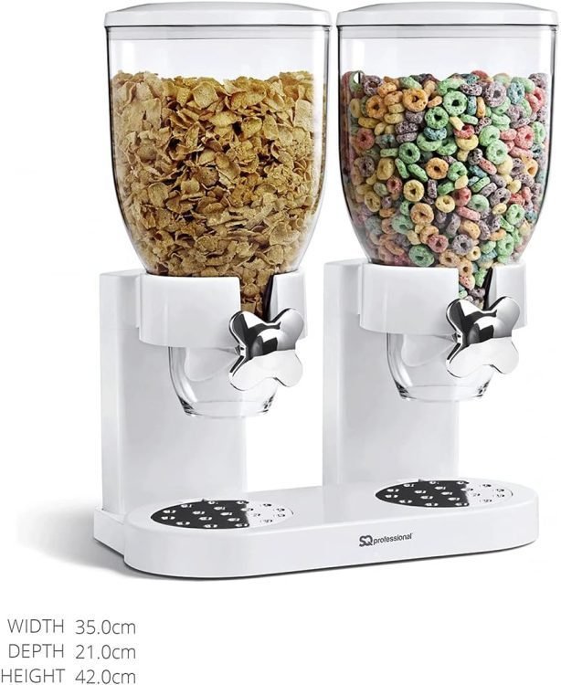 - Areas of use: use the practical cereal dispenser to dispense and store cereal and corn flakes. Thanks to the airtight containers, your cereal/cornflakes will always remain crispy.