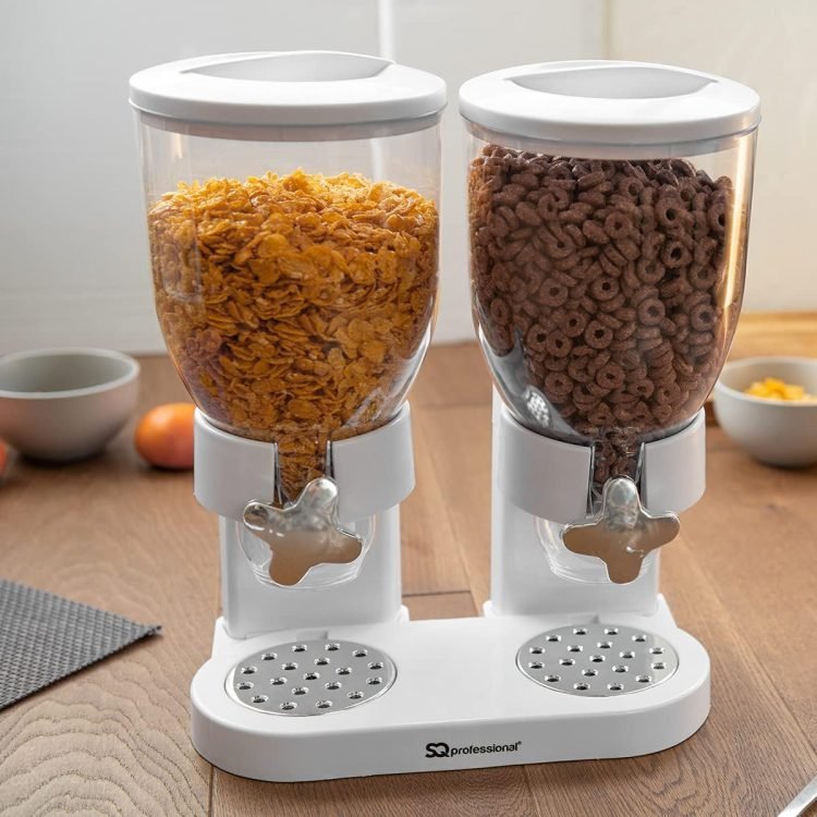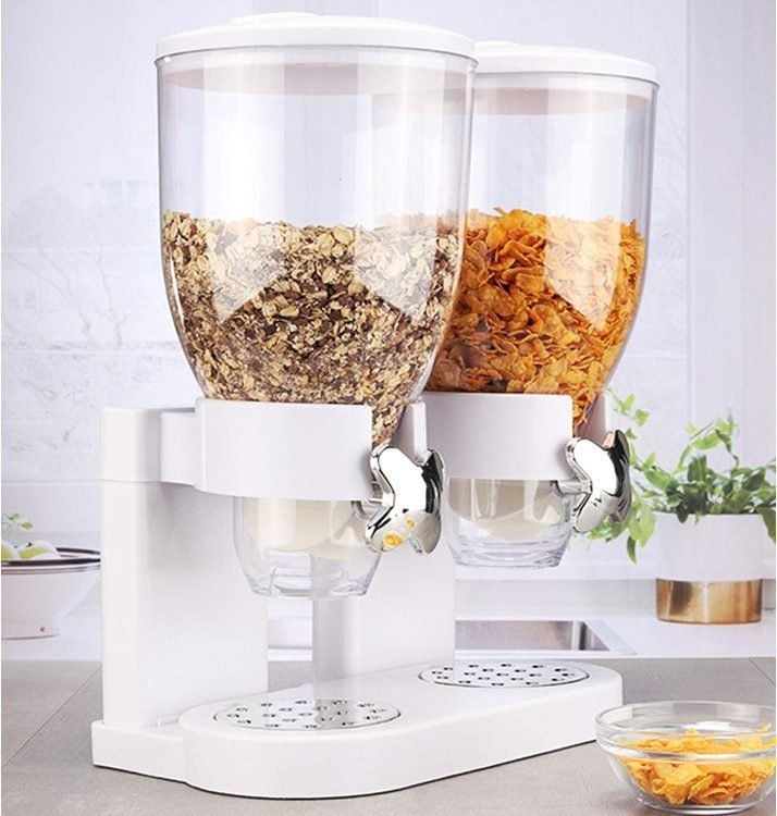 - Construction: the cereal dispenser was designed with 2 containers of 3.5 litres on a station, so you can put the cereal bowl on the station as you wish.