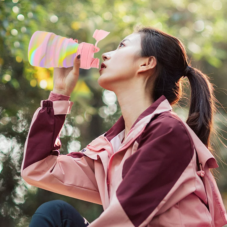 - One of the most intriguing things about this silicone water bottle is its lightweight and collapsible design that makes it super easy to carry around, perfect for traveling, yoga, gym and even hiking.