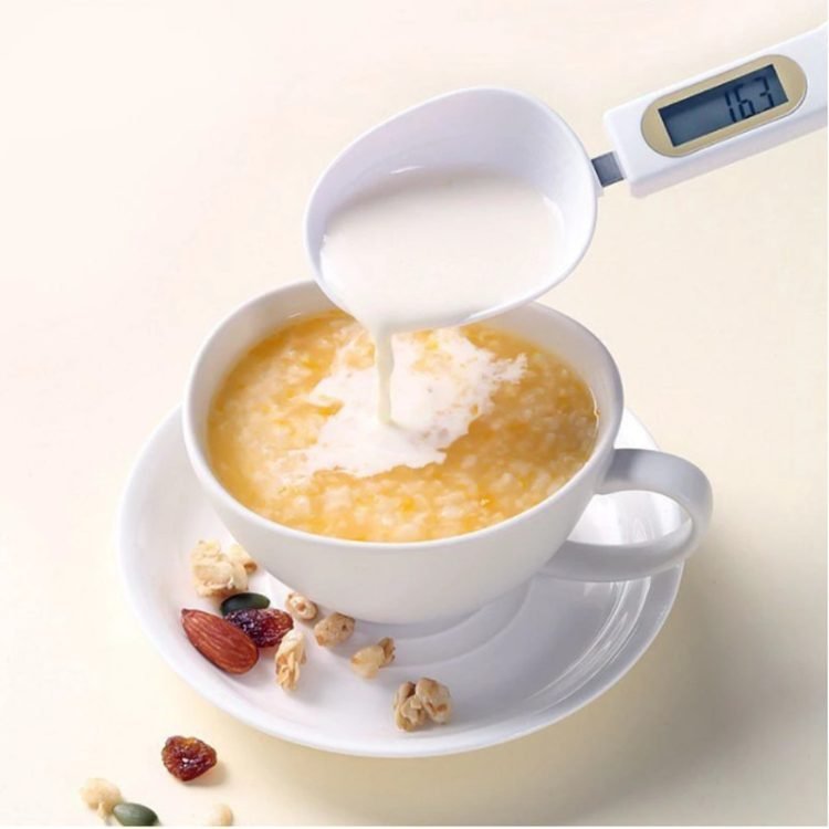 Digital spoon scale with LCD display.