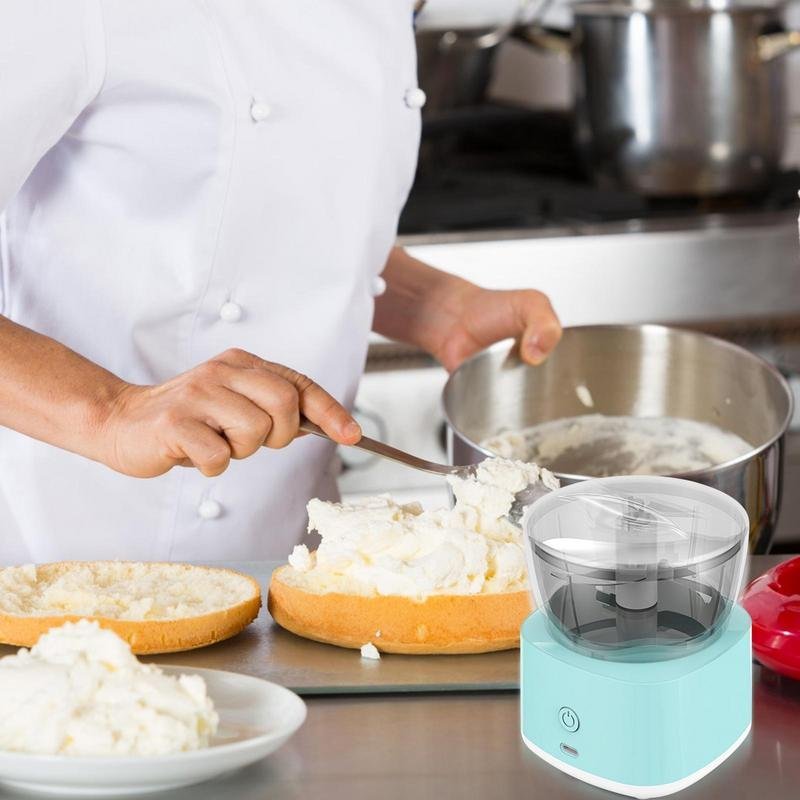 - 2-in-1 Function:?This electric food chopper has two types of cutter heads, stainless steel blades for mincing meat and garlic, and a whisk for whipping cream quickly.