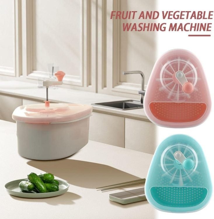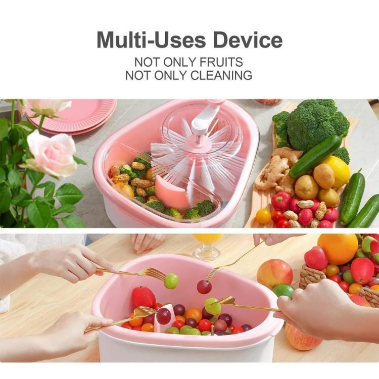 Fruit and Vegetable Washing Machine, Portable Food Cleaning Tool, Fruit Washing Spinner Device with Full-Sided Spin Scrubber Brush, Fruit Vegetable Washer for Home Kitchen