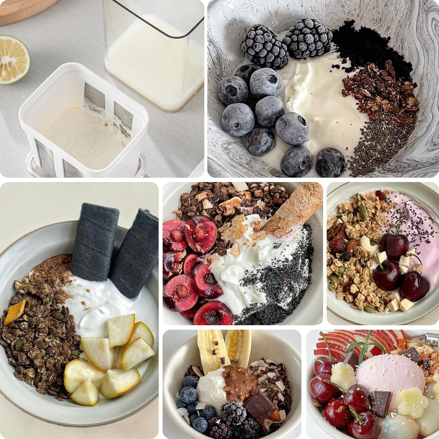 - ✔️ VISIBLE TRANSPARENT LID Our yogurt strainer features a transparent lid design that allows you to easily monitor the coagulation process. That means precise sifting times and a perfectly textured yogurt every time.