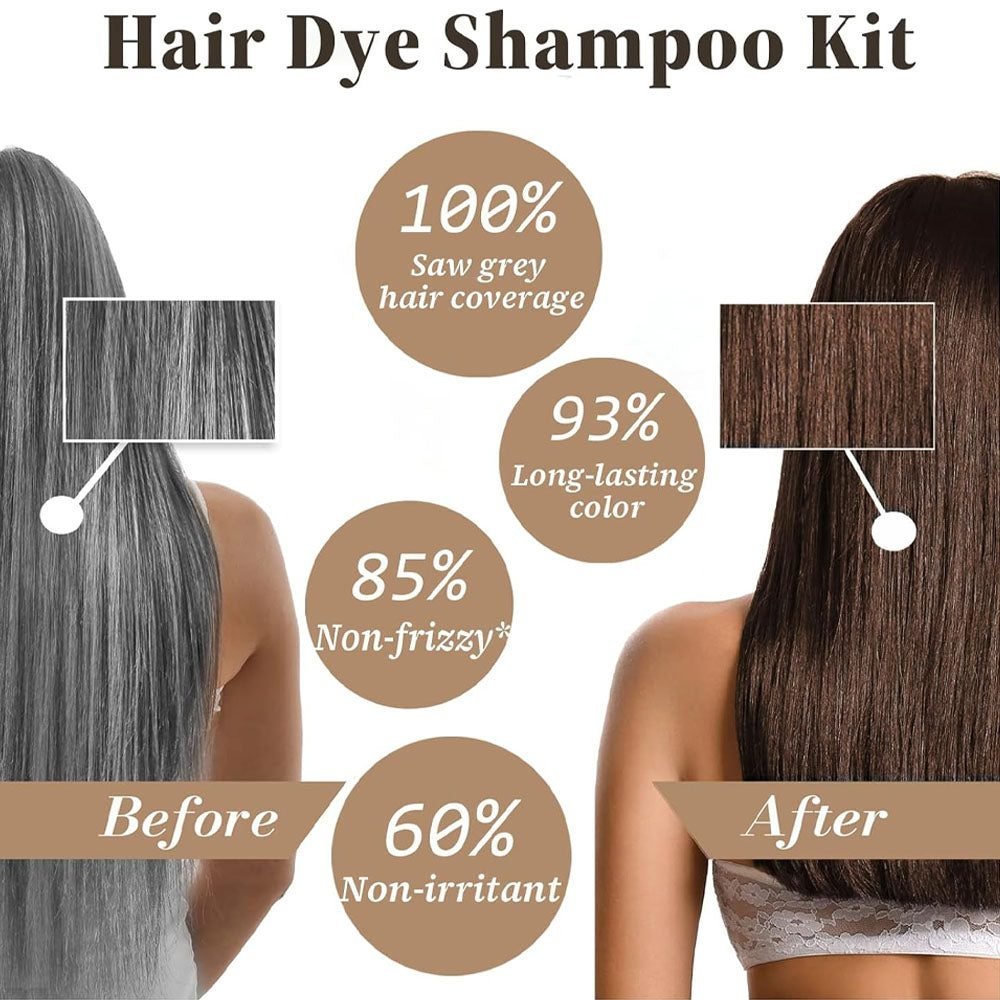 Experience hassle-free hair color application with our Hair Dye Shampoo. Say goodbye to gray hair and hello to your unique style. Choose from 7 authentic shades. Get yours now!