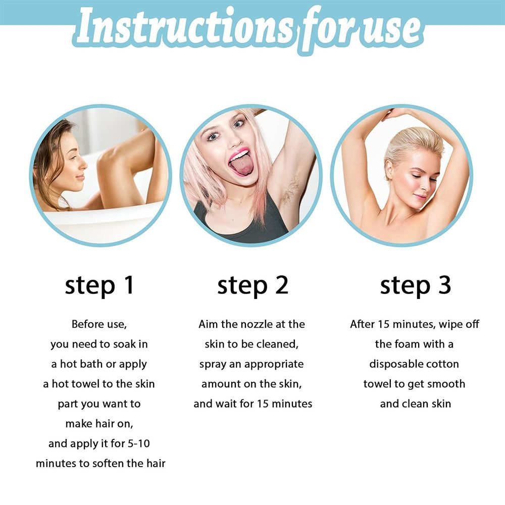 - Effortless hair removal: Experience the ultimate comfort in hair removal with our hair removal spray. Its unique formula gently dissolves the hair leaving your skin smooth and hair free. Whether you want to remove hair on the legs, under the armpits or in the bikini area. Say goodbye to razors and wax, and welcome effortless hair removal with our Hair Remove Spray.