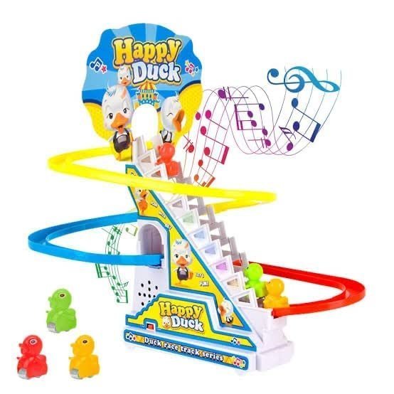 Happy Duck Slide Toy Set Funny Automatic Stair-Climbing Duck Cartoon Race Track Set