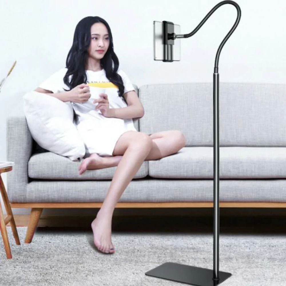 Heavy Duty Tablet/ Phone Floor Stand Flexible Gooseneck Stainless Steel Tablet Holder 115cm Max Height – Black