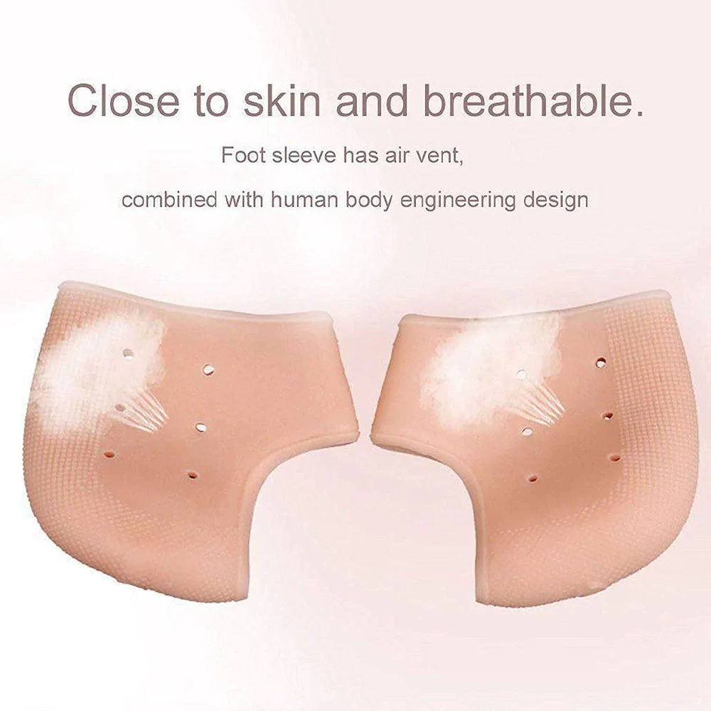 Material: Silicone. Size: XL Silicone material is lightweight, soft, safe, non-toxic and harmless to your feet. Preventing and repairing cracking or peeling, softening dead skin and improving rough skin for foot. Preventing or curing plantar fasciitis, metatarsalgia, corns, calluses, bunions, blister. Air holes can provide enough air for your feet to breathe and wick moisture. Protecting toes by reducing friction between them. Can be worn under or over socks with bare feet, which is reusable and washable. Type: Foot Treatment Function: Foot Protector How To Use: 1. Clean your feet. 2. Soak your feet in hot water for about half an hour. 3. Applying moisturizer evenly. 4. Put on silicone socks. Package Included: 1 Pair Silicone Socks.