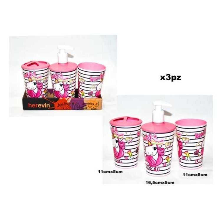 Herevin Patterned Toothbrush Liquid Soap Dispenser Bathroom Set / Unicron