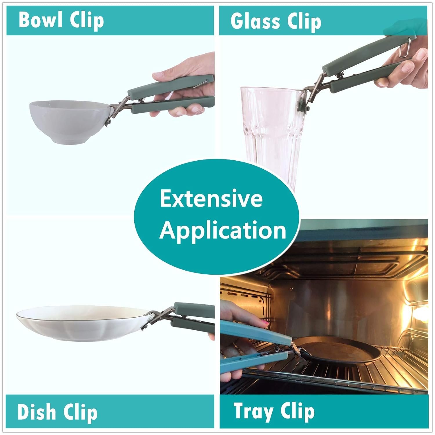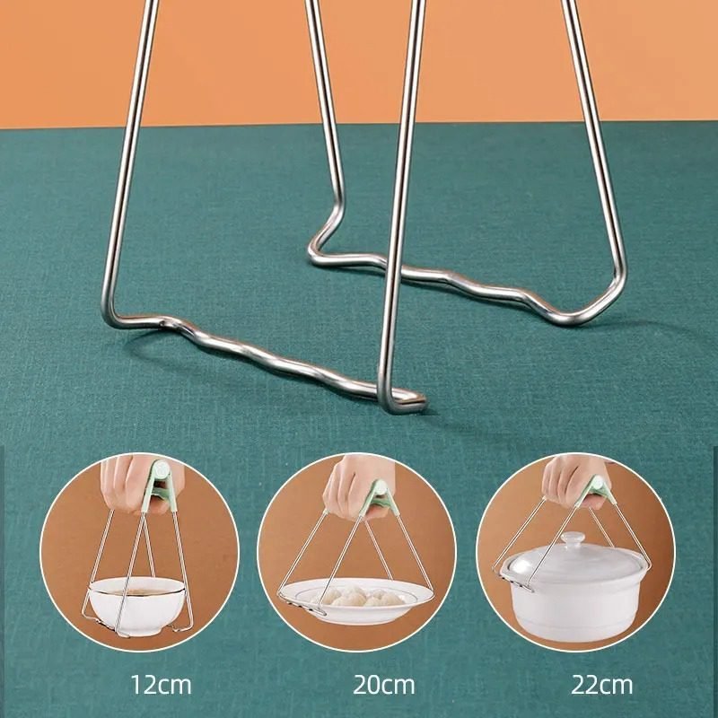 • ?Durable Quality?The dishes clip is made of stainless steel head and ABS plastic handle,rust resistant and heavy bearing capacity, can lift up to 5 lbs with single hand.Stainless steel tong head with silicone pads, easily grip the smooth glass bowls, plates and trays.