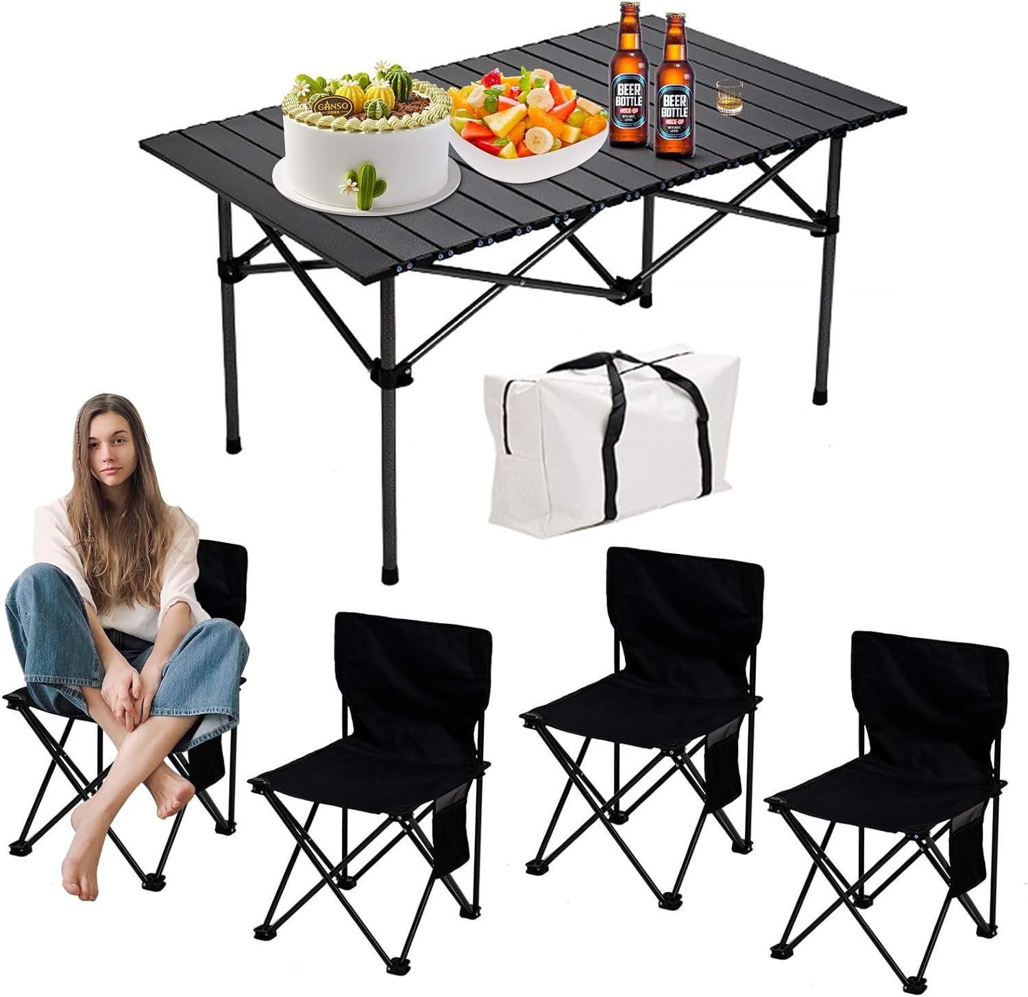 - Durability: This Camping Table has a sturdy aluminum surface that is built to last. Our camping table is stable and durable, supporting up to 220 pounds of weight. This folding picnic table is scratch-resistant and waterproof, making it perfect for outdoor use. The Chairs with Carrying Storage Bag make it easy to store and transport.