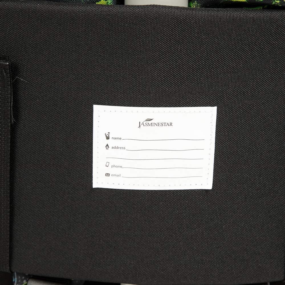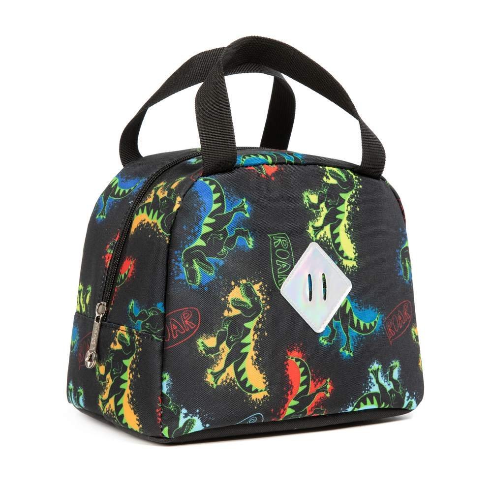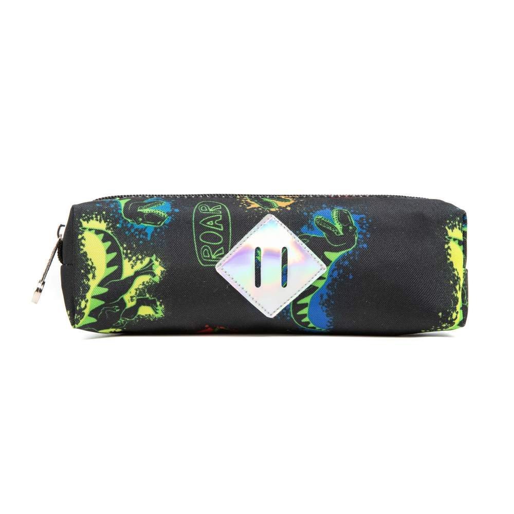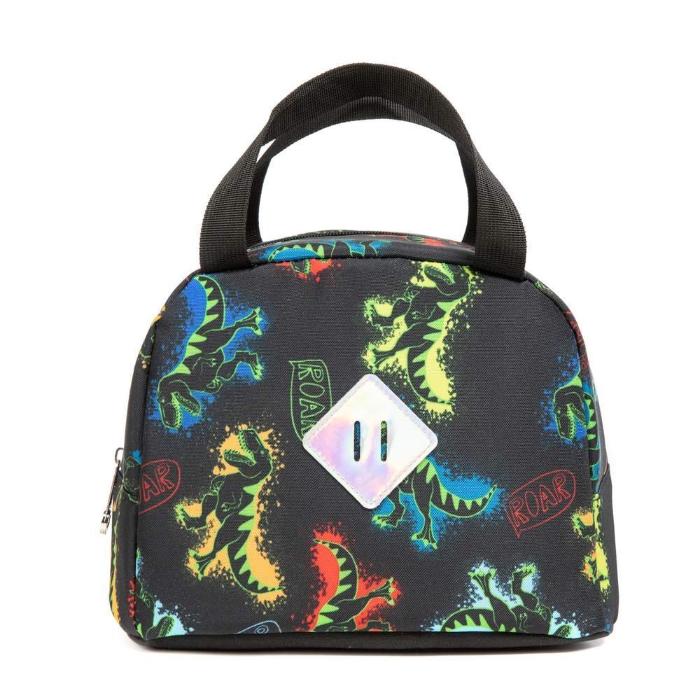 - This kids rolling backpack for boys has a green toy dinosaur printed on the front pocket, along with a small charm that adds a childlike touch to the whole bag. And the whole picture of the school bag is composed of dinosaurs from the same series.