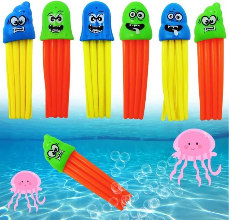 - Set includes 6 vibrant jellyfish diving toys for endless underwater adventures.