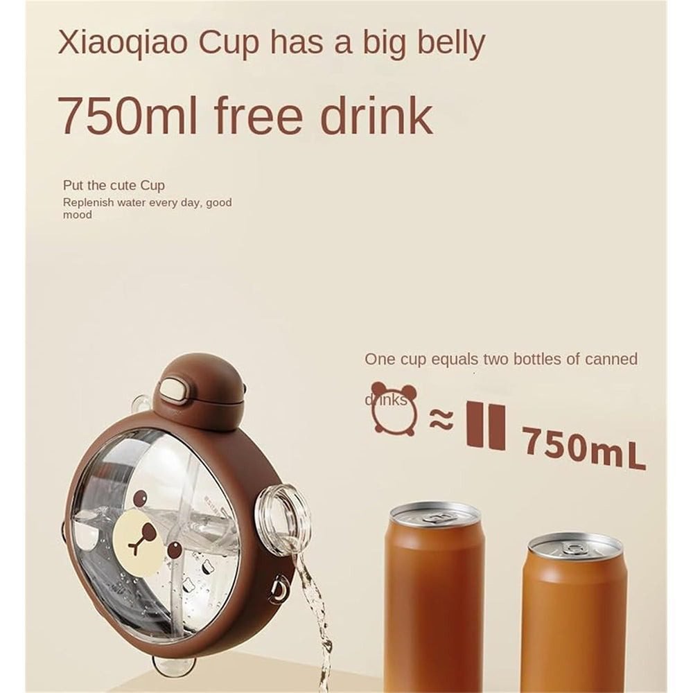 Kawaii Bear Water Bottle With Straw,750ml Cute Cartoon Bear Water Bottle,Portable Plastic Drinking Bottle Aesthetic Water Bottle For Girls Teenager