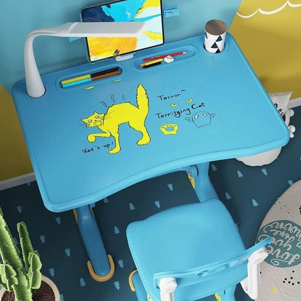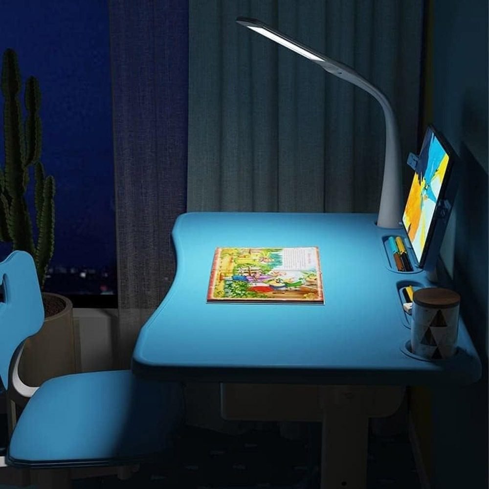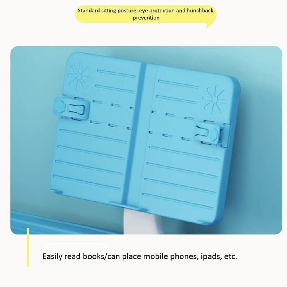 • ? LED Lamp and Bookholder: Equipped with detachable LED table lamp, children can freely adjust the direction and brightness according to their needs, providing good illumination for learning or reading.The rotatable book stand can hold the book and protect eyes at a proper distance to avoid visual damage