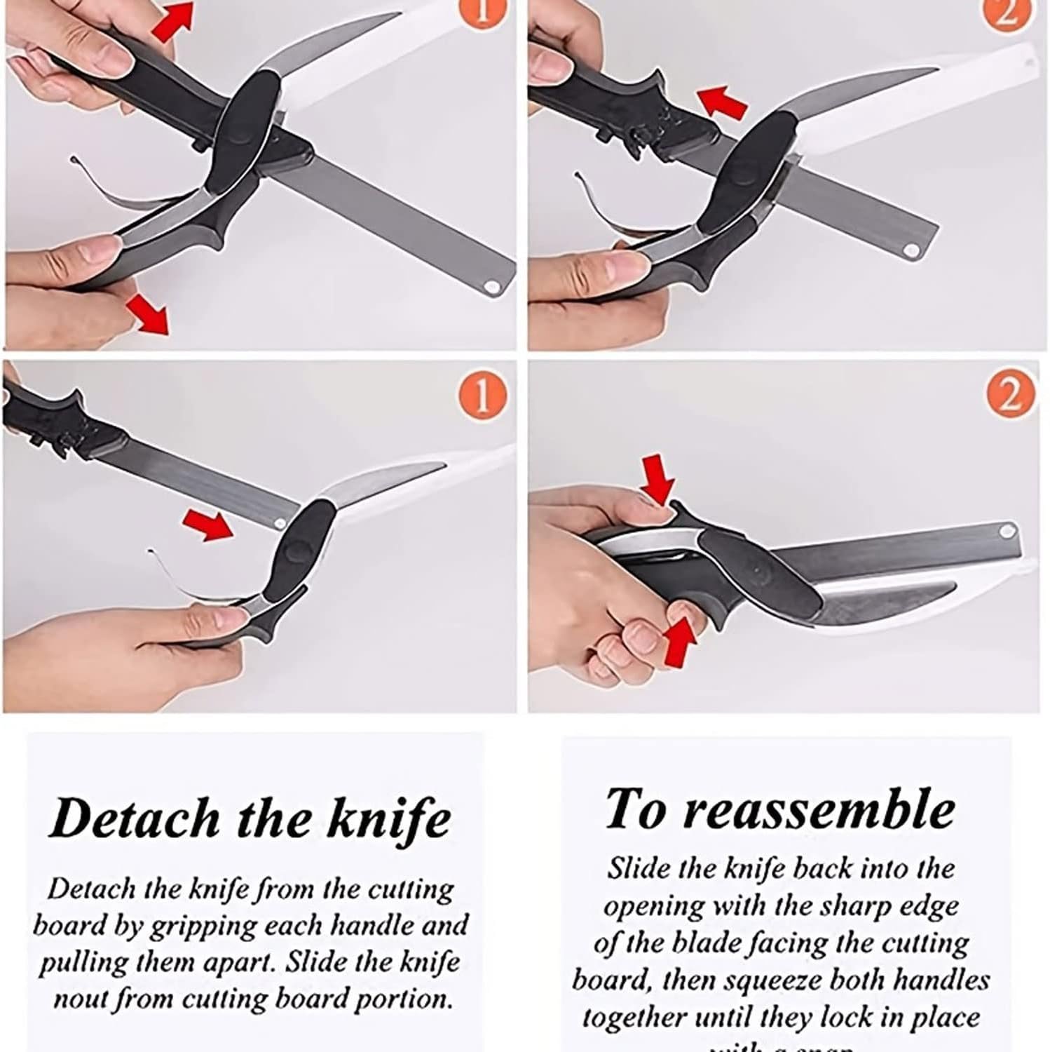 - Easy To Use:Perfect protable kitchen cutter for picnics and camping trips,Combination food chopper and cutting board makes cutting, slicing and easy and fast. while camping you don’t need to bring a cutting board or knife because it’s too much trouble. The lock buckle on the handle’s tail improve the safety of the smart clever scissor’s using.