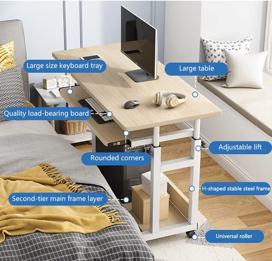 - Application?Works well as beside desk, overbed laptop table, sofa side table, over couch table, chairside table, mobile end table.Widely used for home office,bedroom,living room,guest room,closet,nursery, hallway,college dorm, apartment living, small compact spaces, etc.