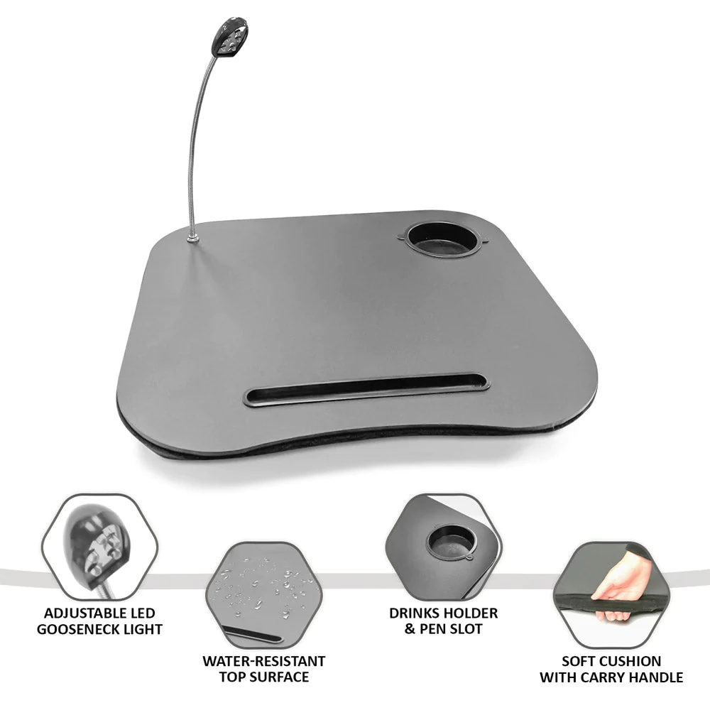 Laptop Tray Cushion with Easy Reading Table CupHolder and LED Light Work Station