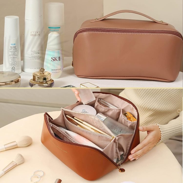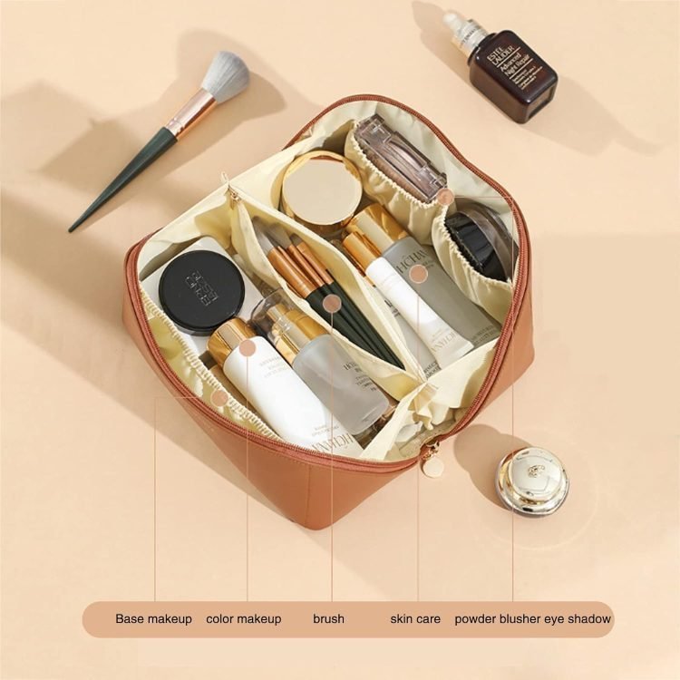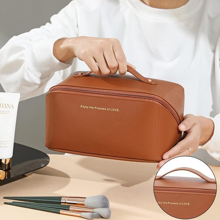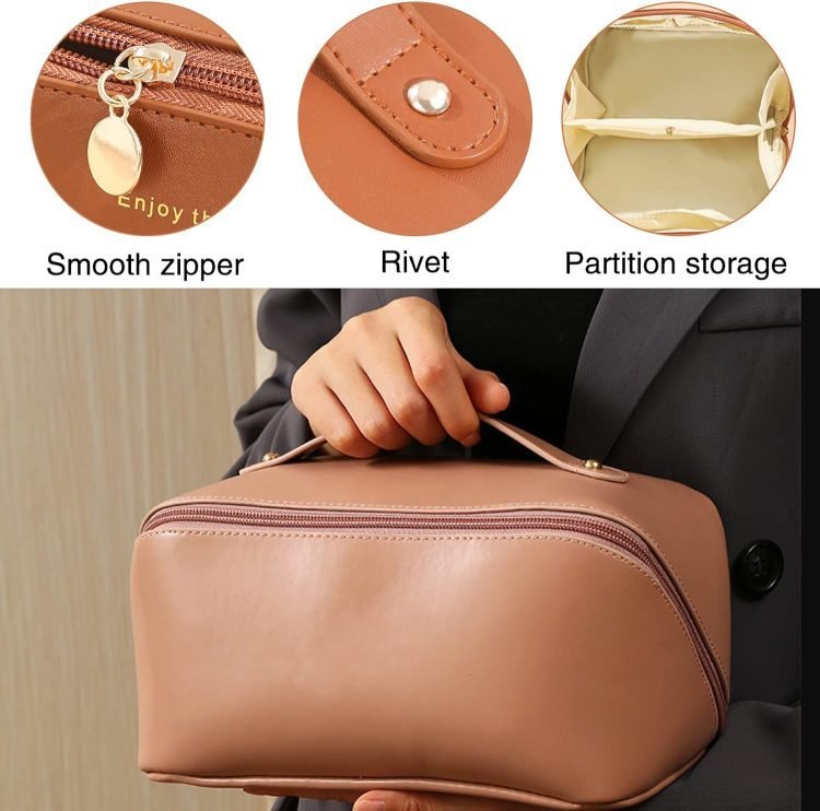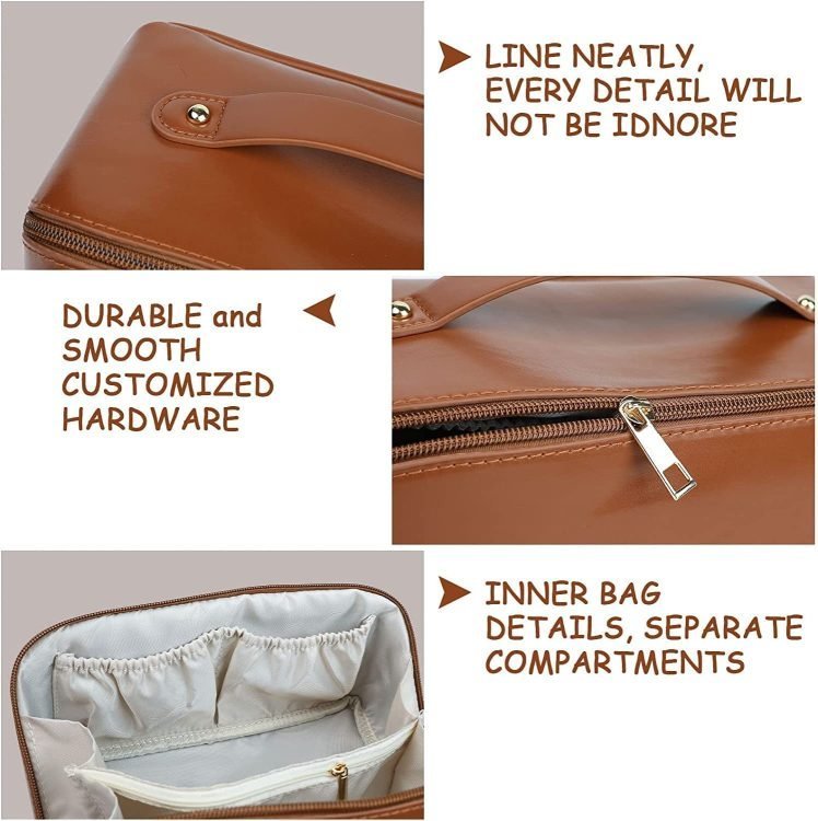 - Top-quality material The brown makeup travel organizer bag is made of water-repellent leather and coupled with quality metal zipper, the toiletry bag is easy to clean and performed well in prevents things inside from getting wet or slipping off.