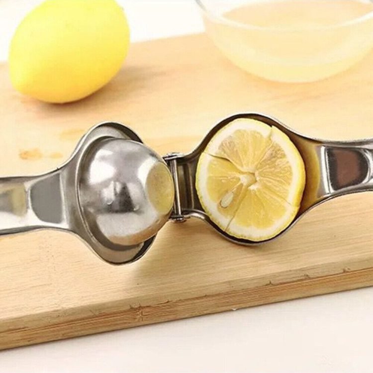 This stainless steel lemon press/lime press can juice limes, large lemons and even small sized oranges. This manual juicer is made with sturdy food-grade stainless steel, lead-free material, it is secure and reliable. Not made from cheap aluminum.