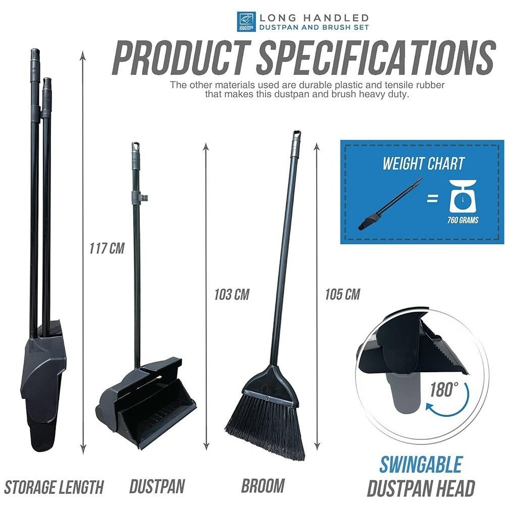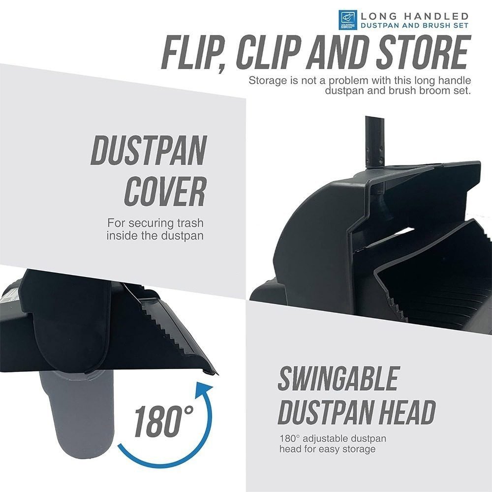- The dustpan is foldable so you can carry trash without it falling out and you can snap the broom onto it