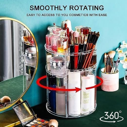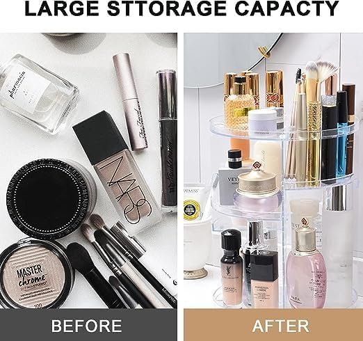 360 Degree Rotating Makeup Organizer Easy to Assemble Stable and Sturdy Lightweight & Portable Saves Counter Space Multi-functional Storage