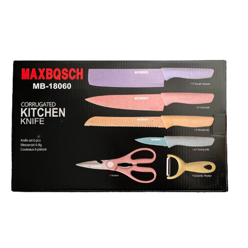 Set:4 types of knives:chef’s knifebread knifeCutting knife,fruit knifeMultipurpose scissorssharpener