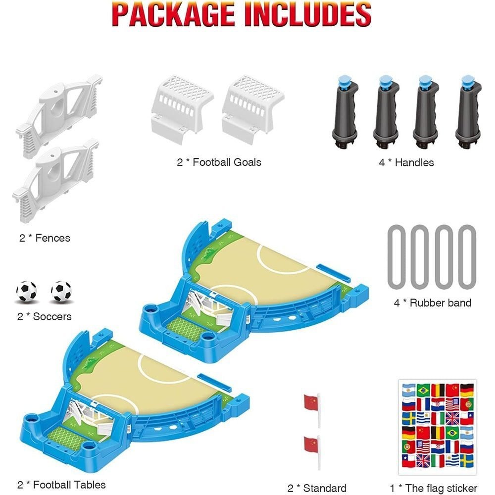 Table football made of high quality plastic, environmental friendly. We carefully design every detail. The edges of the football toy are polished and smooth, which will not cause any harm to children. Playing in the palm of the hand, mothers can rest assured.