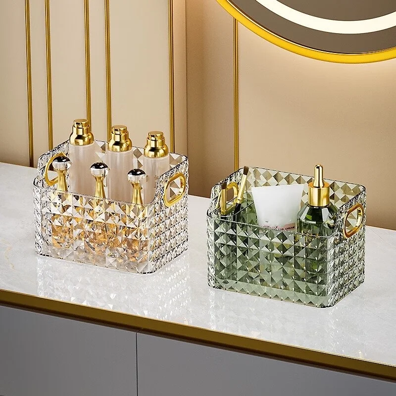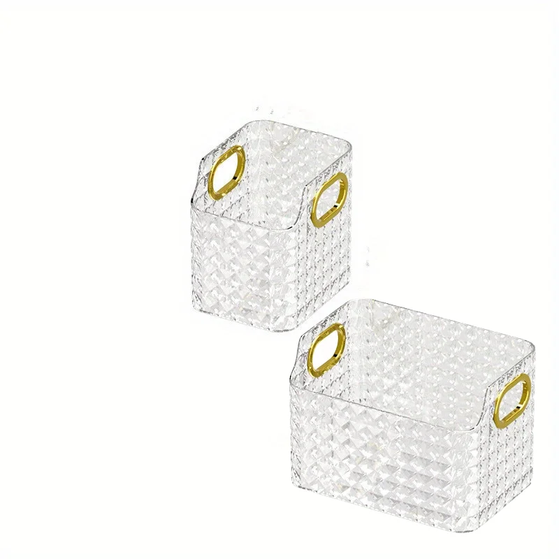 2. Design: This storage box adopts a translucent design, so you can clearly see the items in the box and find their storage location, saving the trouble of searching. There are two luxurious gold edge handles on the side, which can be moved at will.