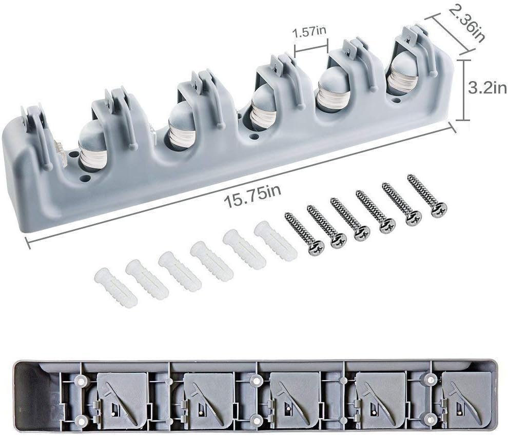 - STRONG AND STURDY: The mop and broom holder organizer is made of tough plastic.Broom and mop holder wall mounted with screws drilling installation.Fit to wall easily and never worry the hanger will fall down.